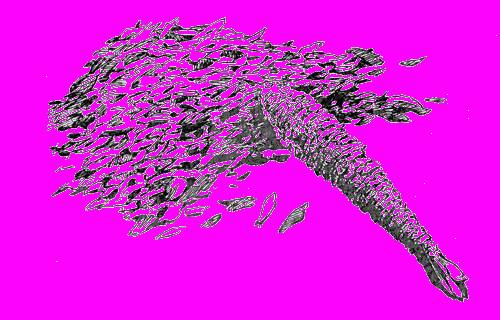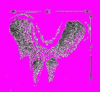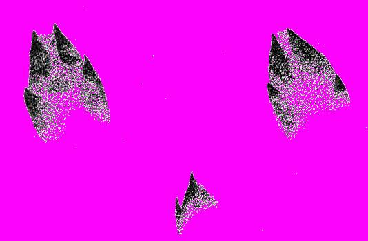 След прыжка белки на неглубоком рыхлом снегу. Детали строения ног не прослеживаются, но хорошо видны разница их величины и характерное расположение отпечатков по углам трапеции (ум.)