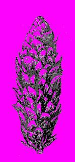 Недозрелая кедровая шишка, поклеванная кедровкой ранней осенью, когда орешки - еще не вынимались (ум.)