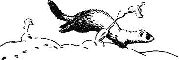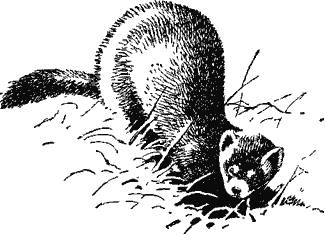 Степной хорь и колонок. В степных районах европейской части СССР, Казахстана, Средней Азии, Западной Сибири и Бурятии встречается степной, или белый, хорь, названный так за сравнительно светлую окраску меха. В отличие от лесного черного хорька у степного туловище покрыто желтоватой шерстью и только ноги, брюшко и задняя половина хвоста окрашены в черно-бурый цвет; этот проворный, сильный и подвижный хищник - один из лучших наших друзей. Он уничтожает массу вредных грызунов, особенно сусликов и хомяков, мелких полевок и мышей. Следы его очень похожи на следы черного хорька, только прыжки обычно еще крупнее; когти передних лап у него длиннее и оставляют более глубокие бороздки.