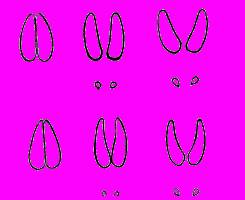 След лося-быка (вверху) и лося-коровы (внизу): 1-на медленном ходу, 2 - на рыси, 3 - на скаку