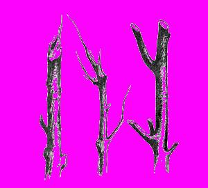 Побеги рябины, оборванные лосем (слева), и побеги дуба, срезанные зайцем-беляком (ум.). Мордовская АССР