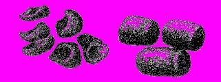 Помет самки кавказского оленя: вверху - зимний, внизу - весенний, при переходе на питание сочным зеленым кормом. Кавказский заповедник