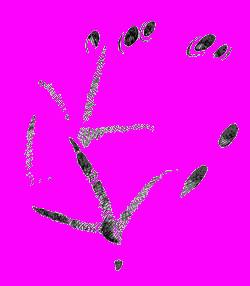 Следы ног и клюва вальдшнепа, достававшего корм из мягкой, влажной почвы. Задний палец короток и едва касается земли, второй, третий и четвертый пальцы тонки и почти одинаковой длины (ум.)