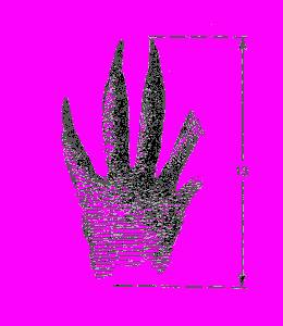 След задней лапы бобра (ум.). Нога пятипалая, пальцы длинные, перепонки не отпечатались. Воронежский заповедник