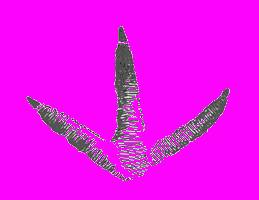 След кулика-сороки. Отпечаток трехпалый, пальцы толстые, сильно суживающиеся к концу (е. в.)