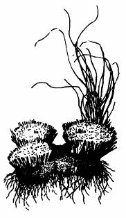 Дерновинка степной овсяницы (типчака), почти начисто объеденного степными пеструшками (ум.). Овсяница - ценное кормовое растение степных пастбищ. Актюбинская обл., июнь