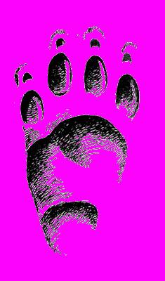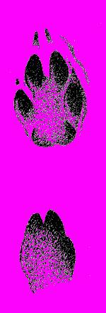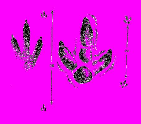 Отпечаток левой задней лапы дикобраза (е. в.) и его следы на медленном ходу (в верху)