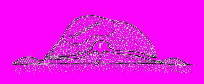 Схематический разрез гнездовой норы серой полевки в муравьином холмике на лугу (гнездо выше уровня земли)