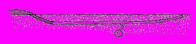 Разрез норы тушканчика - земляного зайчика. Вход забит. Основной ход идет горизонтально на глубине 10-15 см, справа - потайной ход