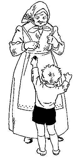 Только Гонзик хотел спросить, не побежит ли дедушка за козой, как бабушка позвала обедать. Гонзик решил ни о чём не спрашивать и пошёл на кухню. Ведь там его ожидал кооперативный обед, такой же, как для взрослого!