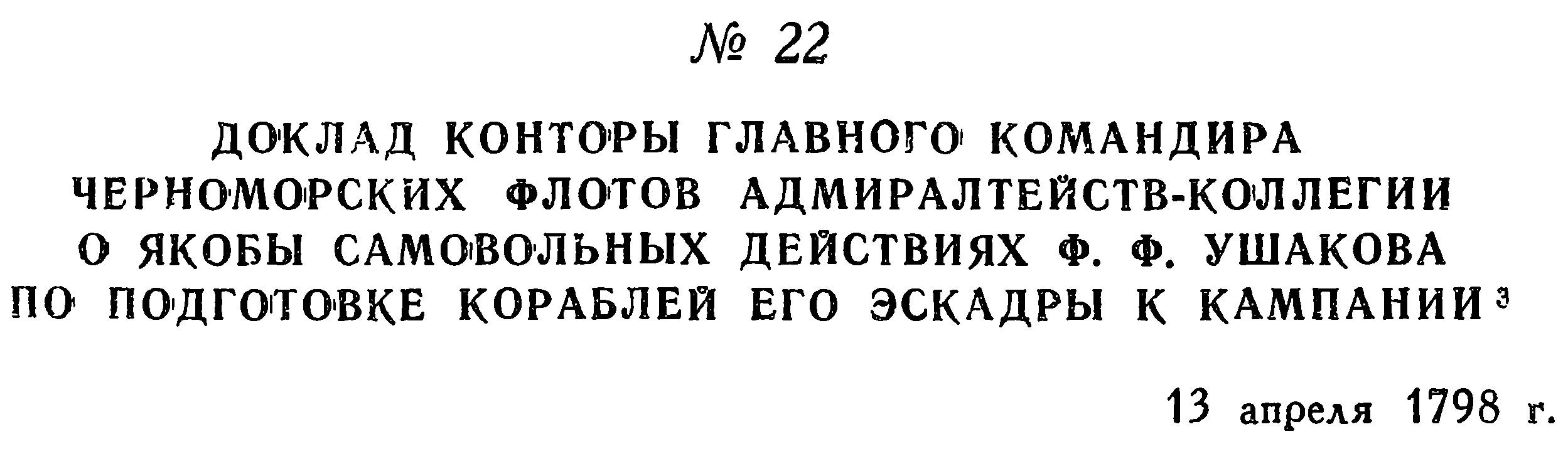причин, почему г. вице-адмирал Ушаков приступил к столь