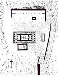 К востоку от храма сохранился фундамент алтаря (3.3х7.8 м) с портиком вдоль северной стороны участка с небольшим фонтаном перед ним. Дорога вела к довольно крутому