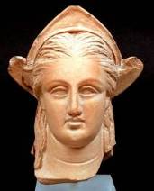 Глиняная голова Артемиды из святилища Аполлона Дафнофора, Эретрия, конец 4 в. до. н. э.