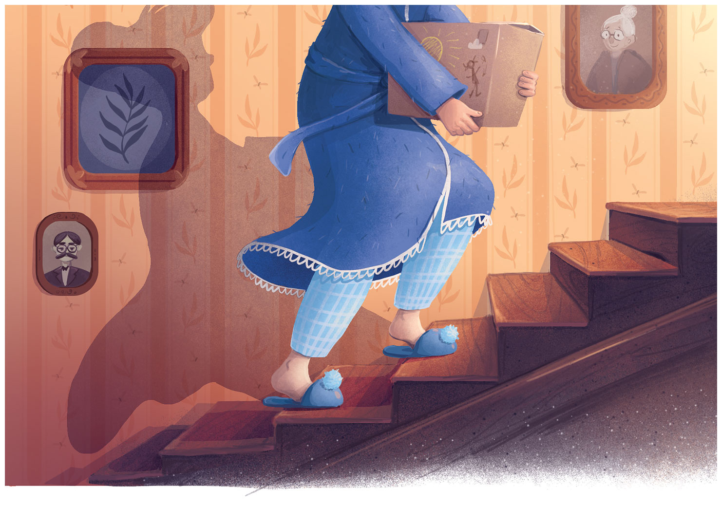Из маленького окна падал свет. На деревянном скрипучем полу лежал старый потёртый ковёр. С низкого потолка свисал жёлтый бахромчатый абажур. Повсюду стояли коробки и сваленные в кучу ненужные вещи. На чердаке было тихо и пахло пылью. Олли резво вскарабкался на подоконник и восторженно оповестил: