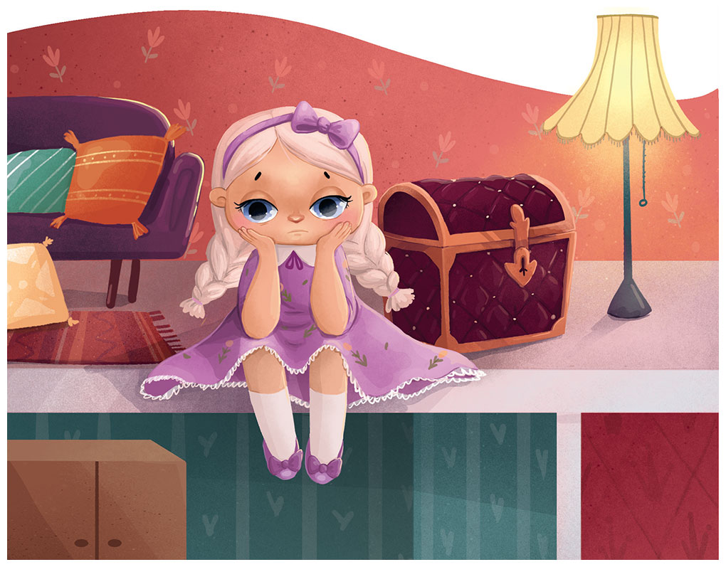 Игрушки разбрелись по чердаку. Каждый искал себе уголок, где можно было бы удобно устроиться. Элиза нашла кукольный домик с балконом и втащила туда свой сундук. Домик был старый, но в нём имелось всё необходимое: гостиная, спальня, кухня и розовая ванная. Кот с гусеницей обосновались на подоконнике. Рока нашла заклеенный надувной круг для купания и запрыгнула в него.