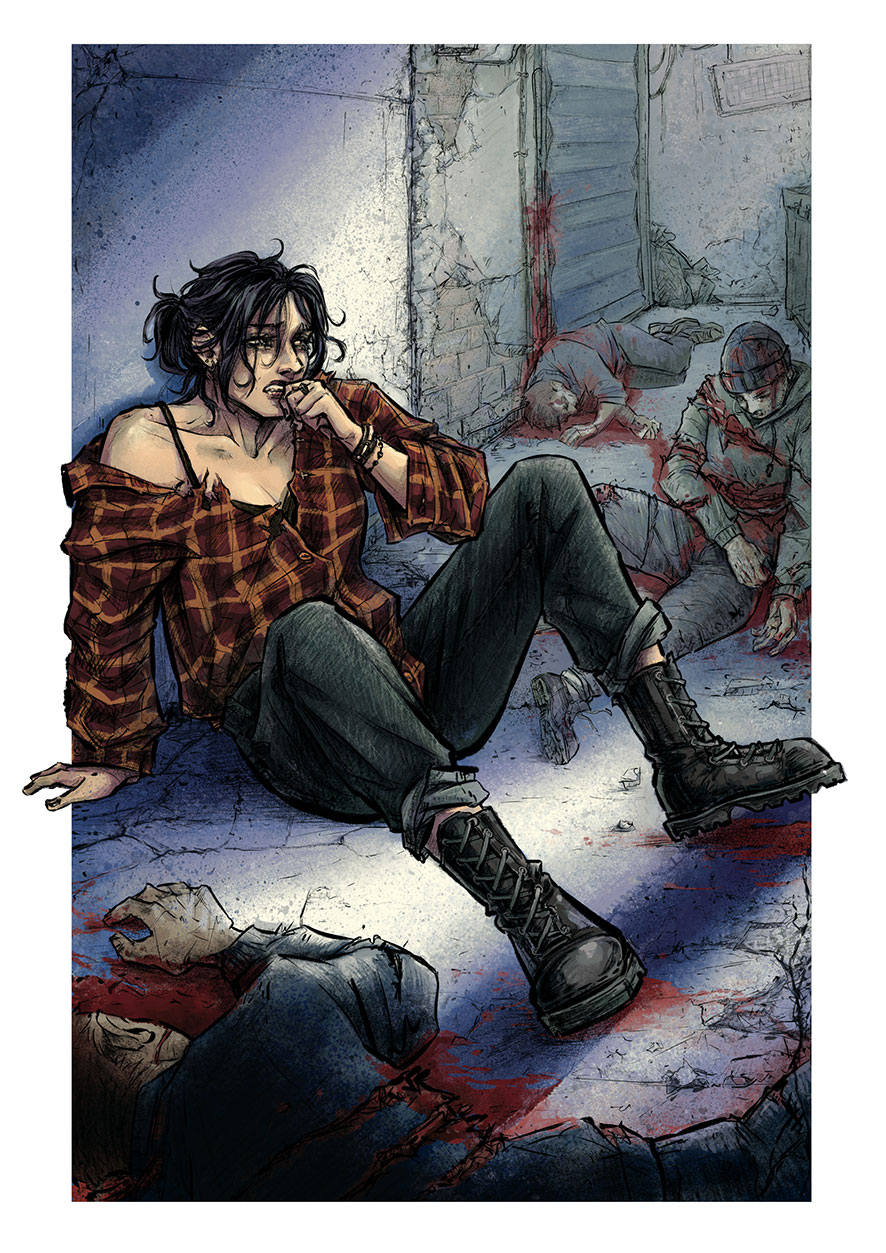 На асфальте вокруг меня лежали трое парней. Или мужиков, я не всматривалась и возраст определить не смогла. Все явно были мертвы, жестоко исполосованы ножом или чем-то похожим. Опять же: в ночной полутьме было не так уж хорошо видно. Вот только кровь я видела отчетливо. Она была повсюду: на растрескавшемся асфальте, на телах, на моей одежде и руках.