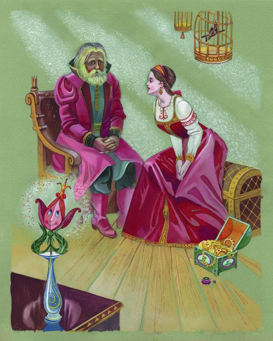 – Что же, дочь моя милая, любимая, не берёшь ты своего цветика желанного? Краше его нет на белом свете!