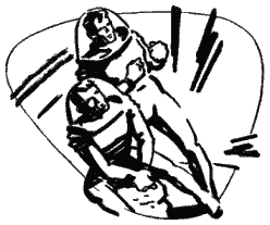 Да, это была голова Сандро Рида, накрытая прозрачным колпаком скафандра. Черты лица были карикатурно искажены… Затем появилась целая группа: Максим Лихо, Патрик Лоу и Юлий Торрена, — они, сильно наклонившись вперёд и вбок, передвигались по поверхности планеты… Снова замелькали символы. За ними из экрана вылетела «ракетка» — были отчётливо видны четыре острых выступа на носу, частые ребристые полосы вдоль сигарообразного фюзеляжа, заканчивавшегося тремя плоскими отростками, похожими на стабилизатор бомбы крупного калибра… «Ракетка» исчезла. Вместо неё на экране появилось сосредоточенное лицо Ло Вея с внимательно суженными глазами и растрепавшимися над лбом прямыми жёсткими прядями.