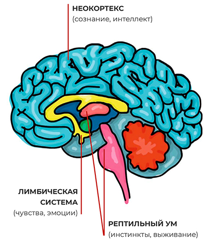 Рептильный мозг (выживание) – еда, секс, отдых.