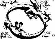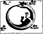 Рис. 16. Уроборос — змея, пожирающая собственный хвост. Изображения Уробороса в виде дракона с короной на голове и в виде крылатой и бескрылой змеи (см. изображение крылатой и бескрылой птицы на рис. 36).