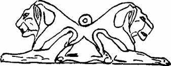 Рис. 17. Рвти (Rwti), египетский двойной лев с диском солнца, символизирующий Акера, момент, когда солнце вновь появляется после странствий по подземному миру, т. е. возрождение сознания после «ночного плавания по морю».