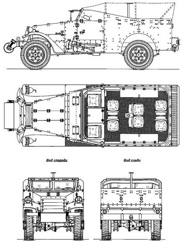 мощностью 110 л.с. Подверглась изменениям и форма корпуса. В частности, броневой лист перед радиатором расположили под наклоном, что повысило его пулестойкость. В 1938 году эта машина была стандартизирована Военным департаментом США под обозначением М3, но производилась опять-таки в небольших количествах — за два года заводские цехи покинуло всего 64 единицы. Все они поступили на вооружение 13-го кавалерийского полка 7-й механизированной кавбригады. Исходя из положительного опыта их эксплуатации, командование армии США приняло решение об оснащении всех кавалерийских частей машинами подобного типа. Вскоре фирма White предложила военным усовершенствованный вариант этого бронетранспортера — M3А1. Его и запустили в большую серию.М3 Scout Саг