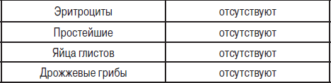 В норме кал не содержит остатков пищи, слизи, крови, гноя и т. д.
