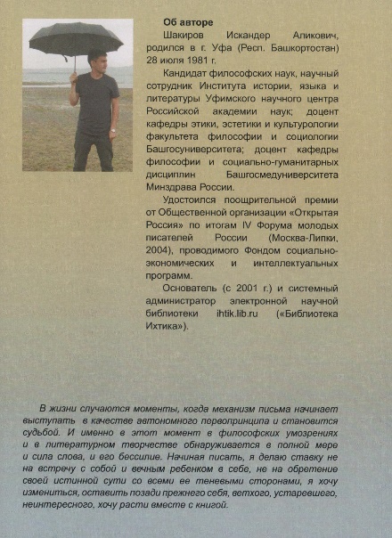 Шакиров И.А. Анамнез декадентствующего пессимиста. Изд-ие 2-е, перераб. и дополн. – Уфа, Мир печати, 2015. – 470 с.