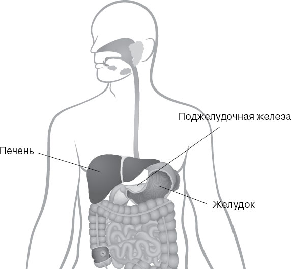 Печень — самая большая железа нашего организма, ее масса 1,5–2 кг. Печень расположена в брюшной полости справа, под диафрагмой. Снаружи печень покрыта соединительнотканной капсулой. На нижней поверхности печени, в особом углублении расположен желчный пузырь — небольшой мешочек объемом 40–70 мл. В желчном пузыре накапливается вырабатываемый в клетках печени пищеварительный секрет желчь. Из желчного пузыря желчь поступает в двенадцатиперстную кишку. За сутки печень выделяет от 500 до 1200 мл желчи. Желчь активирует пищеварительные ферменты кишечника и образует эмульсию с жирами, чем облегчает их переваривание. Также желчь губительно действует на чужеродные микроорганизмы, выполняя защитную функцию.