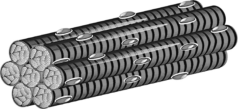 Клетки поперечно-полосатой скелетной мышечной ткани имеют большую длину, которая выражается в сантиметрах. Эти клетки многоядерные (число