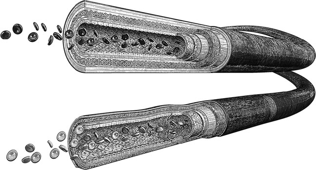 Длинные (трубчатые) кости образуют конечности и участвуют в образовании суставов. Они имеют цилиндрическую или трехгранную форму, их длина значительно больше ширины. Концевые отделы трубчатых костей называют «эпифизами», а серединный — «диафизом». Эпифизы в основном образованы губчатым костным веществом, содержащим красный костный мозг, а диафиз — компактным костным веществом. В центре диафиза проходит костномозговой канал, заполненный желтым костным мозгом. Желтый костный мозг представляет собой жировую ткань с островками кроветворных клеток. Из-за малого количества этих клеток желтый костный мозг в кроветворении не участвует. У новорожденных детей в диафизах трубчатых костей содержится красный костный мозг, который на пятом или шестом году жизни постепенно начинает превращаться в желтый вследствие разрастания жировой ткани. К 20–25 годам этот процесс завершается и в костномозговых полостях диафизов трубчатых костей содержится только желтый костный мозг.