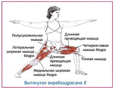 Работа мышц выпрямленной ноги аналогична вирабхадрасане II:
