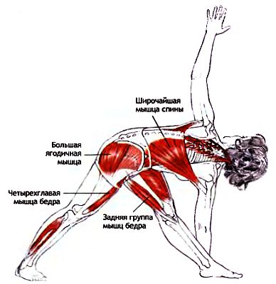 — Задняя группа мышц бедра и большая ягодичная мышца (особенно стоящей впереди ноги);