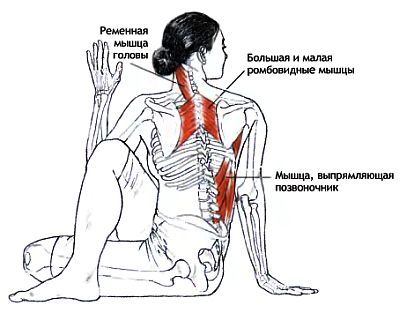 Верхняя часть туловища мобильна, и грудное дыхание в этом положении оказывает стабилизирующее влияние на мышцы брюшной полости. Это позволяет активизировать деятельность диафрагмы и межреберных мышц, что позволяет более интенсивно поворачивать позвоночник в грудном отделе.