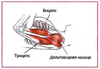 — длинная головка трицепса и большая круглая мышца (разгибание и приведение руки в плечевом суставе);