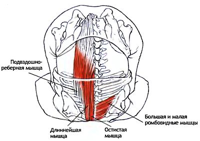 — трапециевидная мышца, большая и малая ромбовидные мышцы (сведение лопаток);
