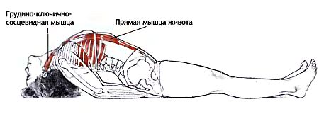 Если поднята левая нога, то правая наружная и левая внутренняя косые мышцы живота противодействуют вращению позвоночника.