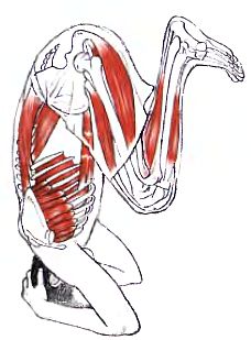 Руки должны иметь возможность свободно двигаться. Этого можно достичь за счет мобилизации лопаток и одновременной стабилизации плечевого сустава с помощью надостной мышцы, полостной мышцы, подлопаточной мышцы и малой круглой мышцы. Если закрепощена широчайшая мышца спины, то это ограничивает подъем лопаток, что может создать излишнее напряжение в позвоночнике и плечевом суставе.