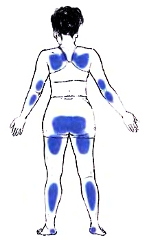 Рис. 2.15. В мертвой позе первичные выпуклости тела соприкасаются с полом (отмечены голубым цветом).