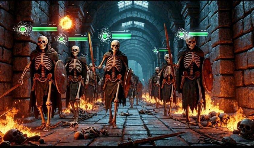 — «ЧТО ЗА НАХЕР?! — с большим охреневанием я наблюдал как ходячие скелеты разваливаются на части. Это происходило сразу, как зелёная шкала исчезала. После чего на каменный пол с грохотом падали объятые пламенем доспехи. — Куда я, бл@ть, попал? Может мне всё это снится? А когда открою глаза окажусь в больничной палате?»