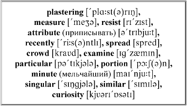 The plastering had here, in great measure, resisted the action of the fire (штукатурка здесь в большой мере устояла перед действием огня; to resist – сопротивляться) – a fact which I attributed to its having been recently spread (факт, который я приписал тому, что ее = штукатурку недавно нанесли; to spread – разворачивать, расстилать; намазывать; наносить). About this wall a dense crowd were collected (около этой стены густая толпа собралась), and many persons seemed to be examining a particular portion of it (и многие люди, казалось, осматривали определенную часть ее: «казались осматривать») with very minute and eager attention (с пристальным и напряженным вниманием; minute – мельчайший). The words “strange!” “singular!” and other similar expressions, excited my curiosity (слова «странно!», «исключительно!» и другие похожие выражения возбудили мое любопытство).
