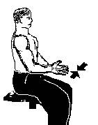 15. Сидя на стуле, сожмите ноги и положите ладони под бедра ближе к коленям. А теперь попробуйте поднять плечи вверх, не сгибая рук и изо всех сил прижимая ладони к нижней стороне бедер (рис.2.22).