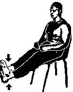 19. Сидя на стуле, поднять выпрямленные ноги и положить одну на другую. Верхней ногой давите вниз и одновременно нижней ногой поднимайте вверх. Поменяйте ноги (рис.2.26).