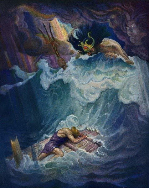 Уаетс Нэвел, Посейдон насылает шторм на плот Одиссея