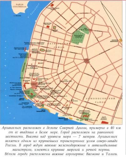 Несмотря на громкие имена здешних уроженцев, нынешние Холмогоры и находящаяся неподалеку родина Михаила Васильевича, село Ломоносово (бывш. Денисовка) не могут претендовать на главенство Поморья. Центром экономики и культуры Русского Севера был и остается Архангельск. Город расположился в дельте Северной Двины. Здесь река делится на три рукава — Корабельный, Мурманский и Никольский, а также многие притоки. Высота правого берега — от 2 до 8 м, левый низкий, песчаный. Архангельск расположен в основном на правом берегу Северной Двины.