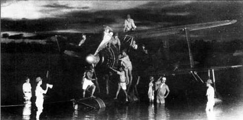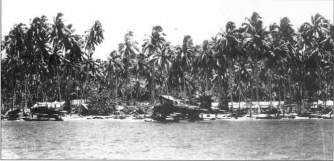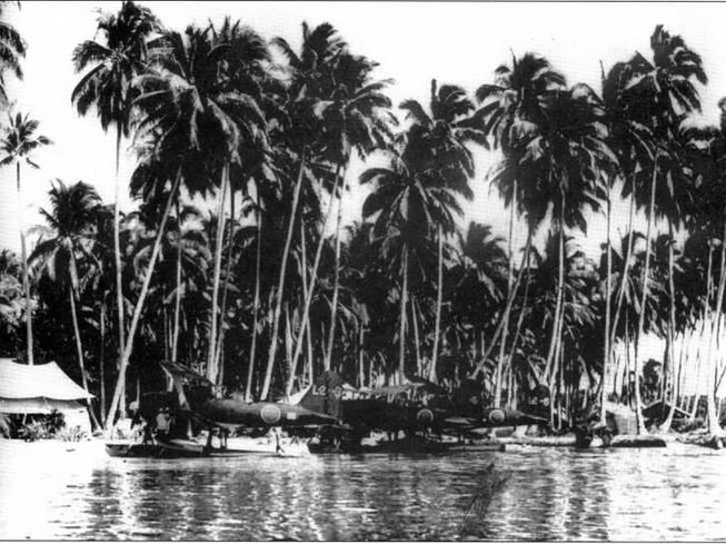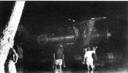 Две фотографии подготовки к ночному вылету гидросамолётов- корректировщиков тип 0 гидроавианосца "Куникава-мару" в базе гидроавиации на острове Шортленд, Соломоновы острова