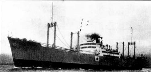 Довоенная фотография "Хирокава-мару". На борту судна можно разглядеть японский флаг, наносившийся с началом Второй мировой войны на все японские суда на заграничных