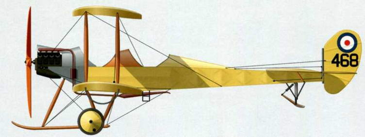В.Е.2а №468, на котором зимой 1914-15гг. летал лейтенант Лано Хокер. 6 эскадрилья, аэродром Беллёль. Опознавательные знаки только на руле поворота