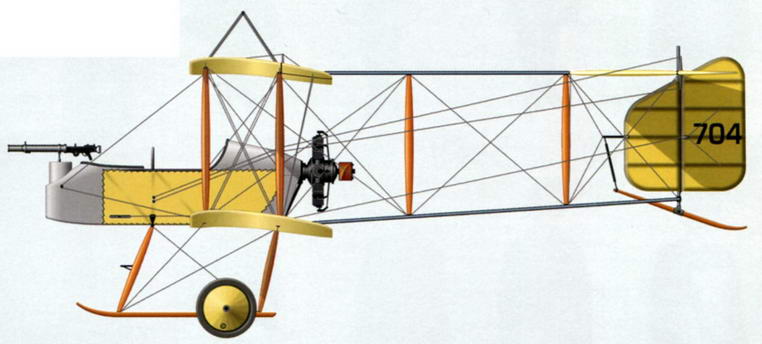 "Виккерс" F. В. 6 №704, на котором капитан Лайонел Рис летал в декабре 1914 г. 7 эскадрилья, аэродром Нетеравон, Англия