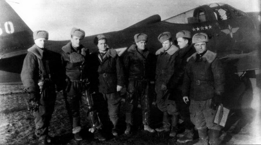 Лётчики 352-го ИАП, после боевого вылета, зима 1945 г.